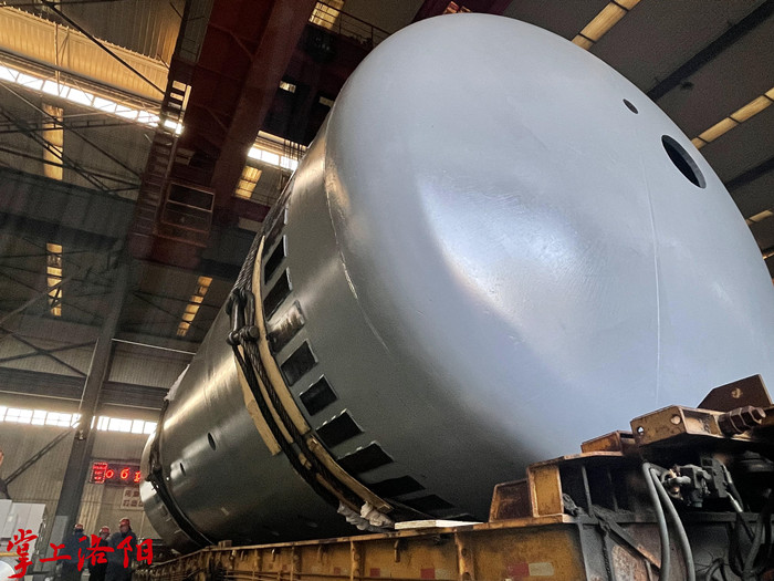 - 12月25日,我公司生產(chǎn)的兩臺φ5×15m陽極爐成功裝車,即將發(fā)往客戶現(xiàn)場。 該產(chǎn)品直徑5米、長15米,單臺爐體及配套設(shè)備重量達(dá)到385噸。雖然直徑高達(dá)5米,從爐體一端到15米